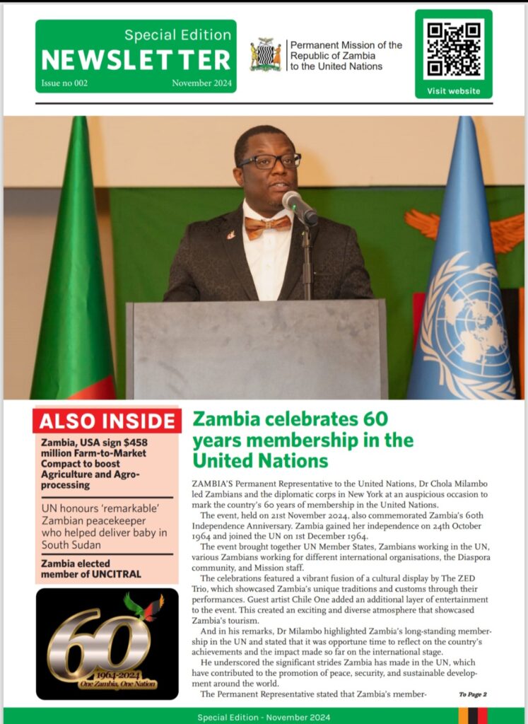 The Fourth Edition of the Permanent Mission of the Republic of Zambia to the United Nations (UN) Newsletter can be accessed from the Mission’s website